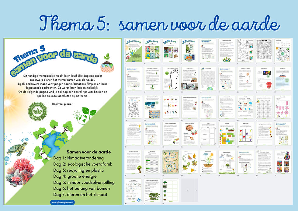 Dan heb ik iets moois voor jou! Het digitale themaboek geeft jou een mooie leidraad met elke dag een ander onderwerp binnen het thema.